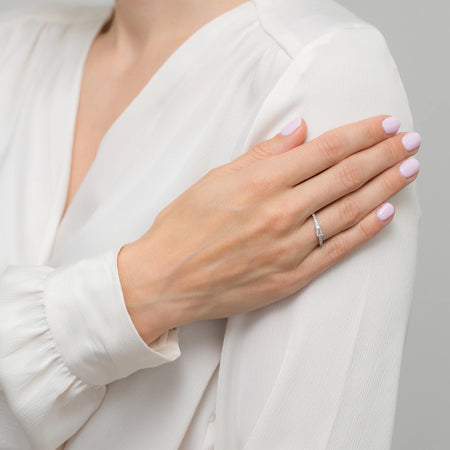 Strieborný prsteň so zirkónmi Ručne vyrobený v tradičnej dielni Gremari, tento prsteň zo striebra so zirkónmi je elegantným doplnkom ku všetkým typom outfitov. Prsteň je špeciálny šperk, ktorý ženy milujú, a preto je ideálnym darčekom pre vašu milovanú osobu.