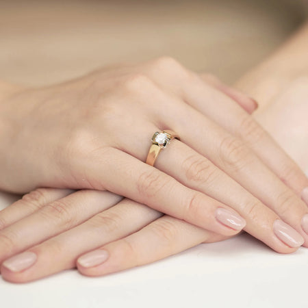 Ručne vyrobený v tradičnej zlatníckej dielni Gremari, tento zlatý zásnubný prsteň s 0,50 ct laboratórne pestovaným diamantom stelesňuje nadčasovú krásu a majstrovské remeslo.