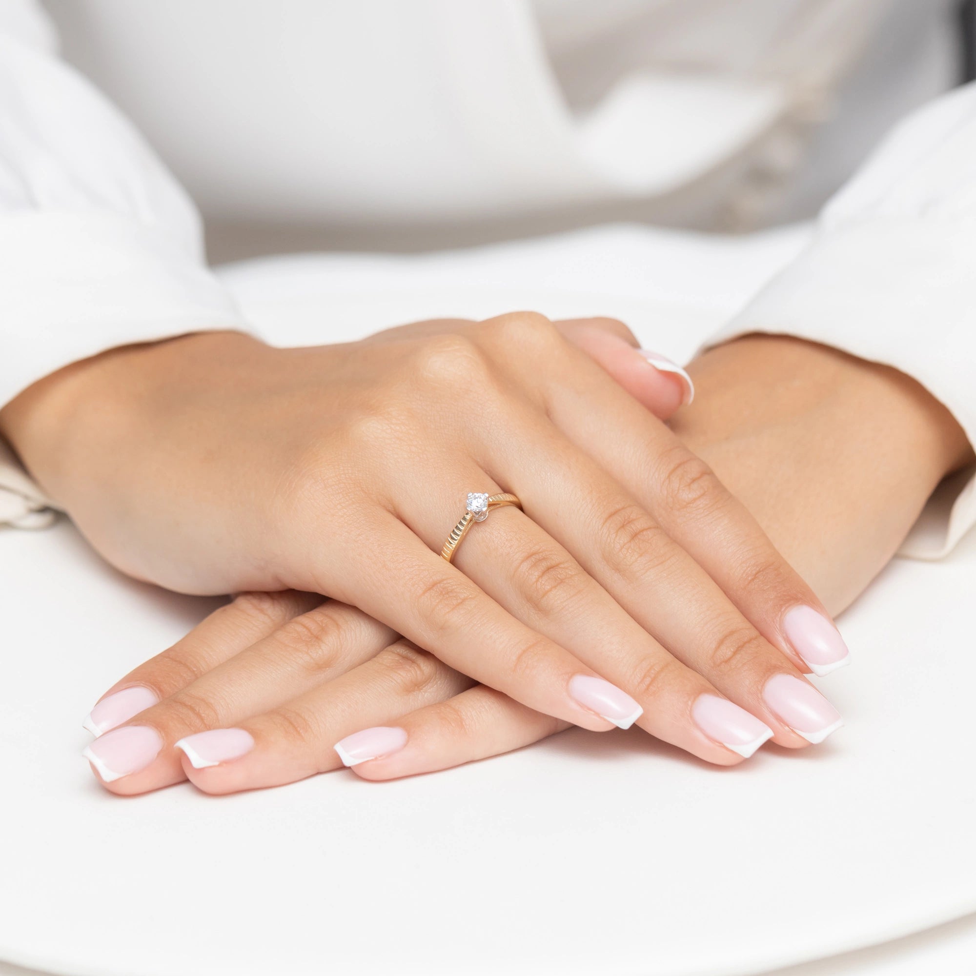 Zlatý prsteň so zirkónmi Ručne vyrobený v tradičnej zlatníckej dielni Gremari, tento zlatý prsteň z 14K zlata s puncovým označením 585 je očarujúcim, jemným doplnkom, ktorý zvýrazňuje krásu vašich rúk. Jemný dizajn robí z tohto zlatého prsteňa dokonalý doplnok k inému šperku, ako sú diamantové prstene a zlaté náramky. Zlatý prsteň je stelesnením elegancie a triedy. Je to univerzálny doplnok, ktorý môžete nosiť každý deň aj pri špeciálnych príležitostiach. Vyrobený z najkvalitnejšieho zlata, ohromuje svojím nadčasovým leskom a odolnosťou. Je to dokonalý spôsob, ako zdôrazniť svoj štýl a pridať akémukoľvek outfitu nádych luxusu. Kamene so zirkónmi sú vytvorené v laboratórnych podmienkach a ich vysoká tvrdosť a vynikajúce optické vlastnosti z nich robia jednu z najlepších imitácií diamantov dostupných na trhu so šperkami. Ich mimoriadna schopnosť lámať svetlo spôsobuje, že žiaria nádherne pri každom pohybe. Zlatý prsteň Gremari je zabalený v elegantnej krabičke, ktorá je ideálna na darovanie. Prichádza so štítkom šperku, ktorý uvádza ryzost, hmotnosť a symbol kovu – aj keď je to darček na poslednú chvíľu, máte to vyriešené!