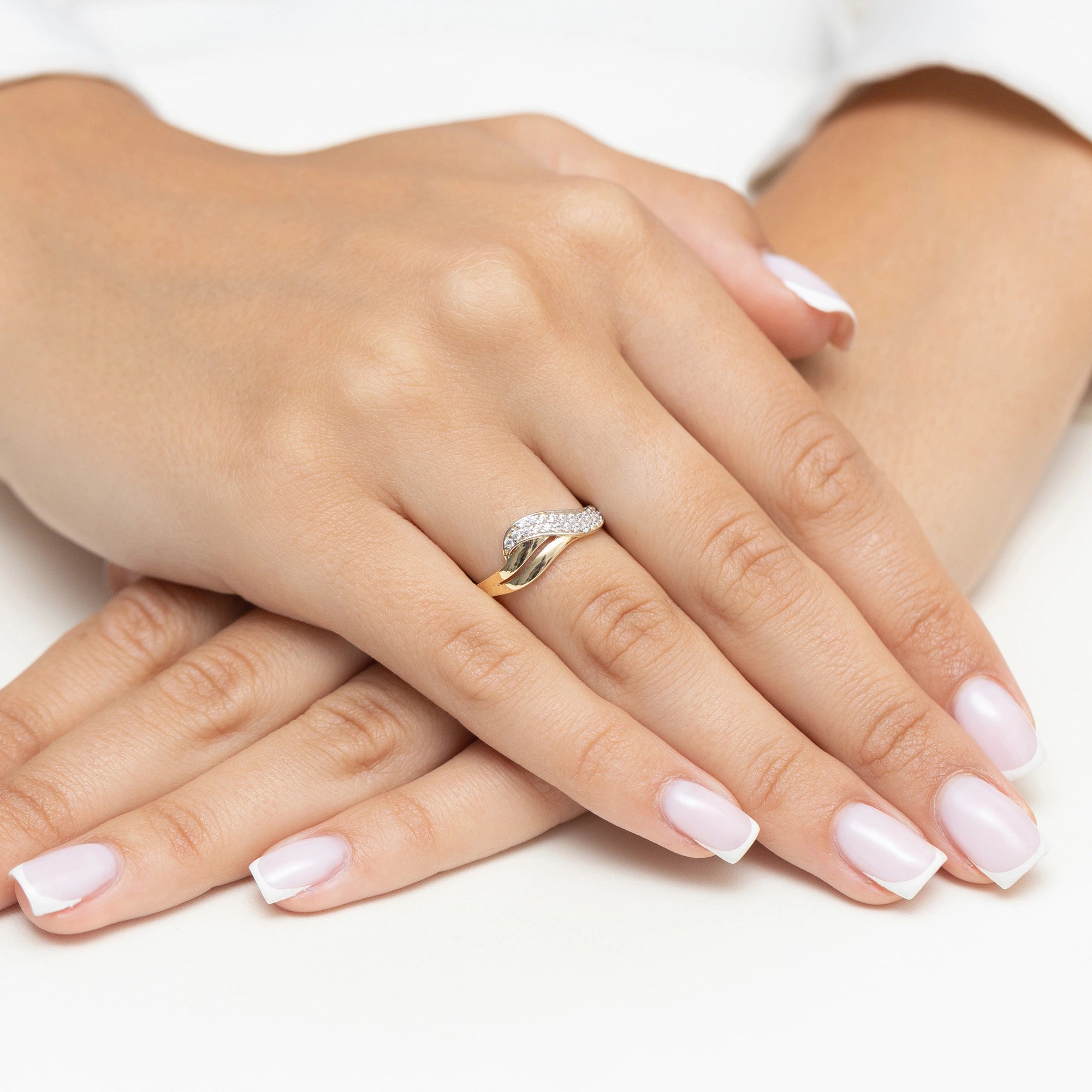 Zlatý prsteň so zirkónmi vlnky